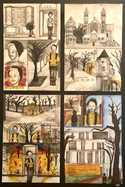 This project involved creating a storyboard depicting a typical daily commute to school. The subject here is myself, and the concept behind the story is music creating a brighter outlook on my morning to lead me to take on the day. The color washes in and everything gets more clear the more I walk and listen. I also used this as an opportunity to highlight some of the amazing Chicago architecture in my neighborhood in the wide shots.